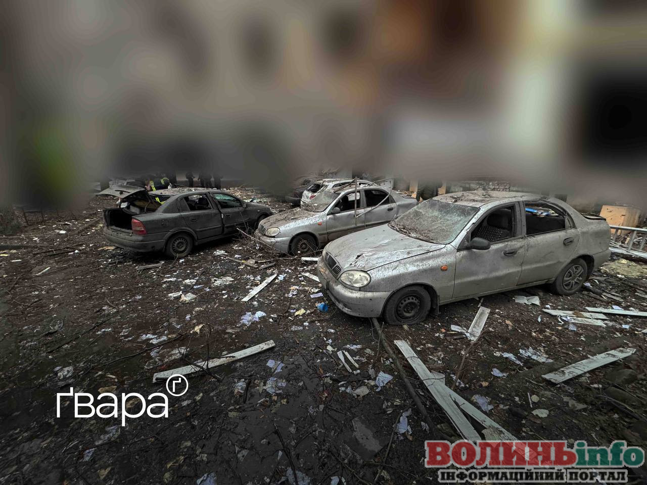 Пошкоджені багатоквартирні житлові будинки, господарчі споруди, інша цивільна інфраструктура, горять автівки. Працюють рятувальники та медики.