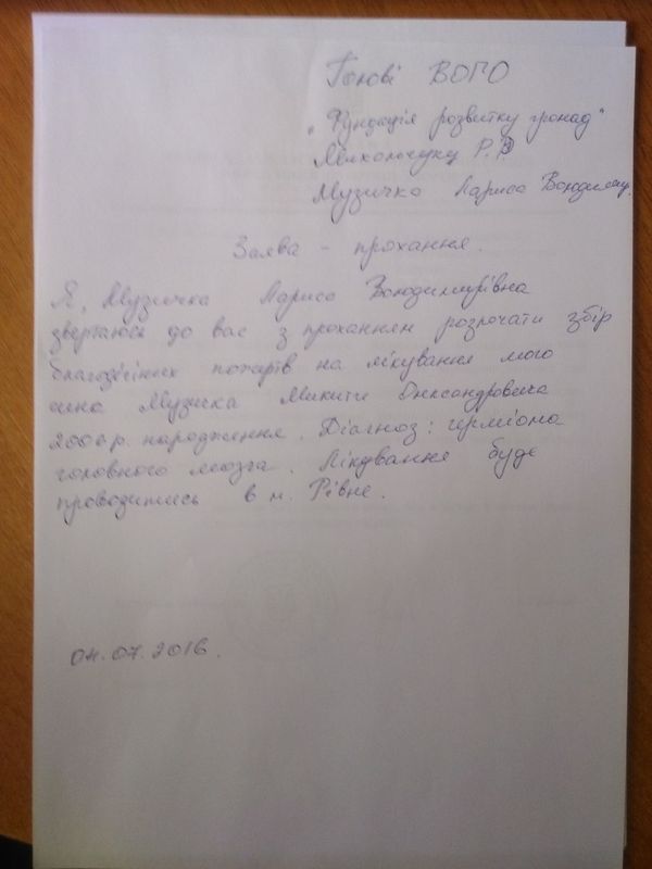Нещодавно до «Фундації розвитку громад» за допомогою звернулася Музичко Лариса Володимирівна – нещасна жінка, чию дитину відмовляються лікувати в Україні.