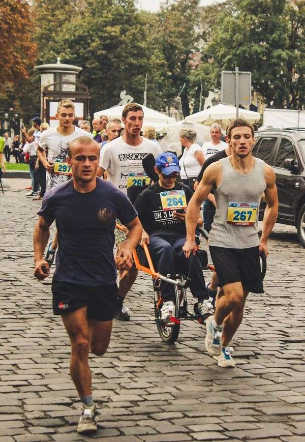 Хлопець з ДЦП на спеціальному візку успішно подолав забіг «Львівська десятка». ФОТО