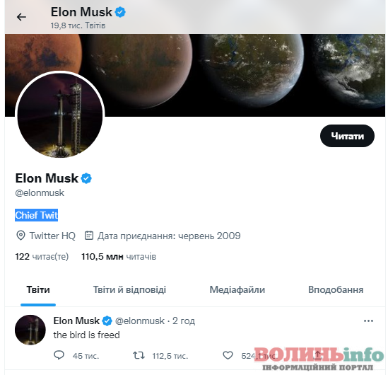 Сьогодні, 28 жовтня, у його профілі на Twitter з’явилася позначка “Chief Twit”