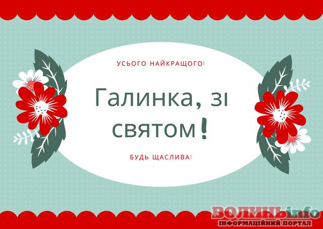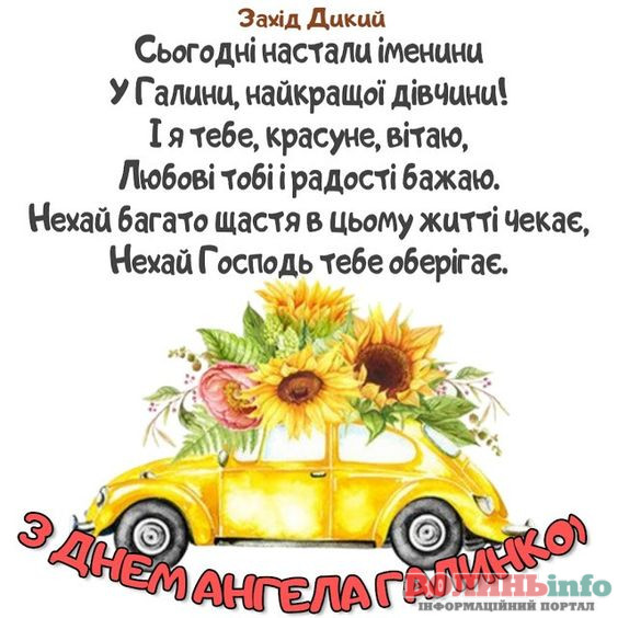 Дорога наша Галина! В цей святковий день – День твого Ангела, бажаю, щоб в твоїй душі грала весела пісня, а за вікном світило яскраве сонце, щоб руки твої займалися любимою справою, а в голові з’являлися цікаві ідеї, щоб близькі тебе цінували і любили, а навколишні люди – поважали і захоплювалися тобою.