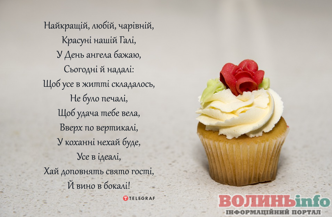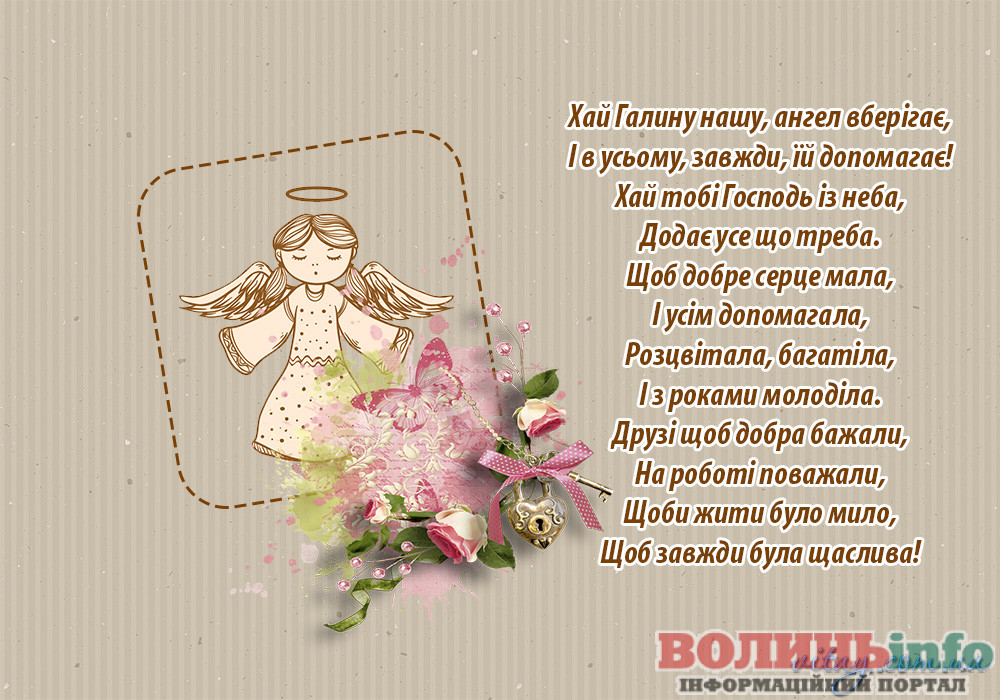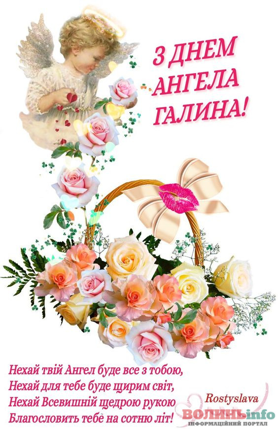 Дорога Галина. Вітаю тебе з чудовим святом – Днем Ангела Галини! Нехай твій добрий ангел дарує твоїй душі світло надії, захищає від усіляких негараздів і дарує здоров’я й силу.