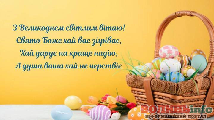 Від щирого серця поздоровляємо вас з Воскресінням Христовим, з Пасхою Христовою, і нехай царюють у ваших серцях радість і душевний спокій! Нехай до Вашої оселі прийде здоров’я, любов, щастя, добробут, душа нехай світлішою стає, серце пламеніє любов’ю, а помисли стануть щирими та добрими. Всіх Вам земних благ!