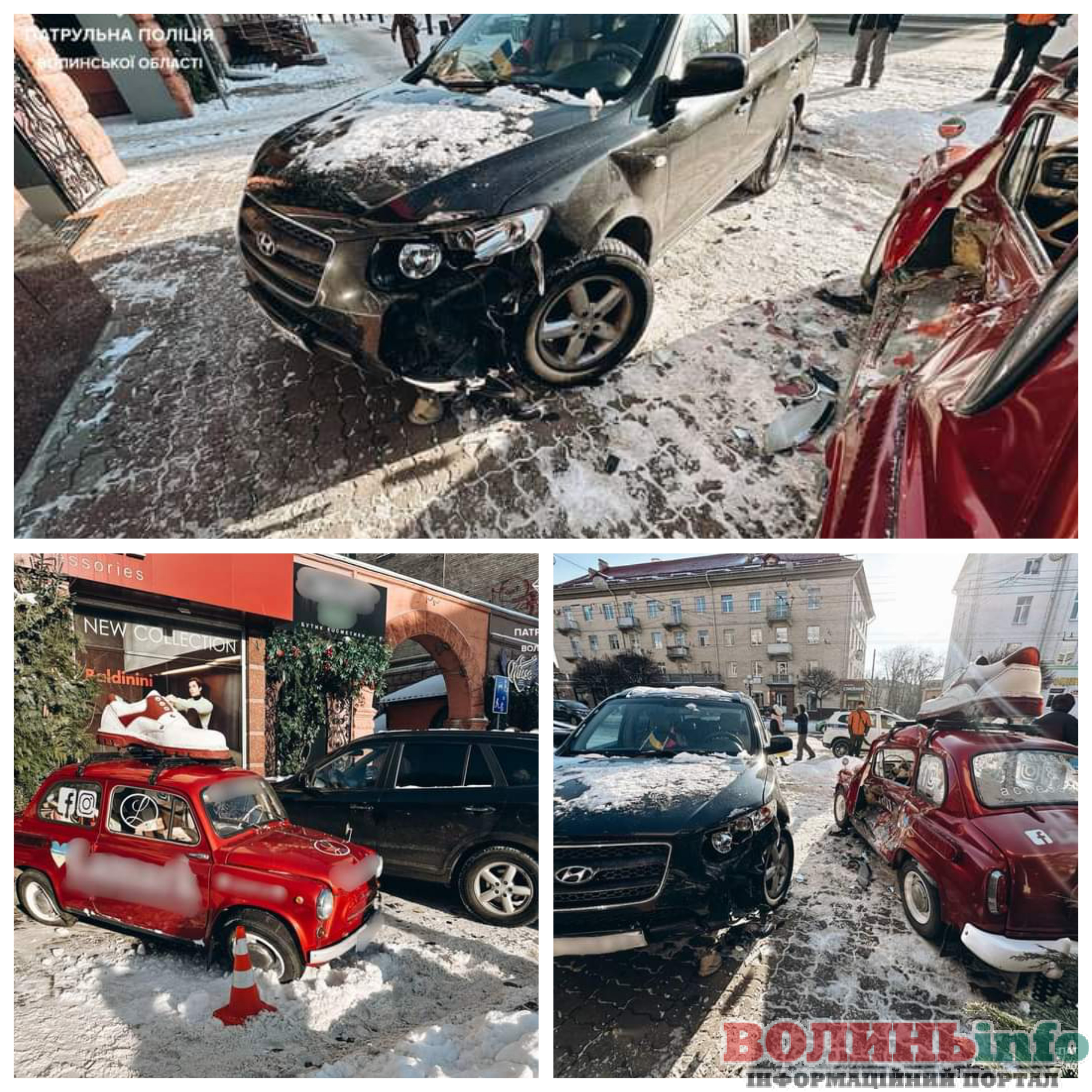 У Луцьку автомобіль наїхав на припарковане авто, яке виконувало роль рекламної інсталяції: на місці працювали патрульні