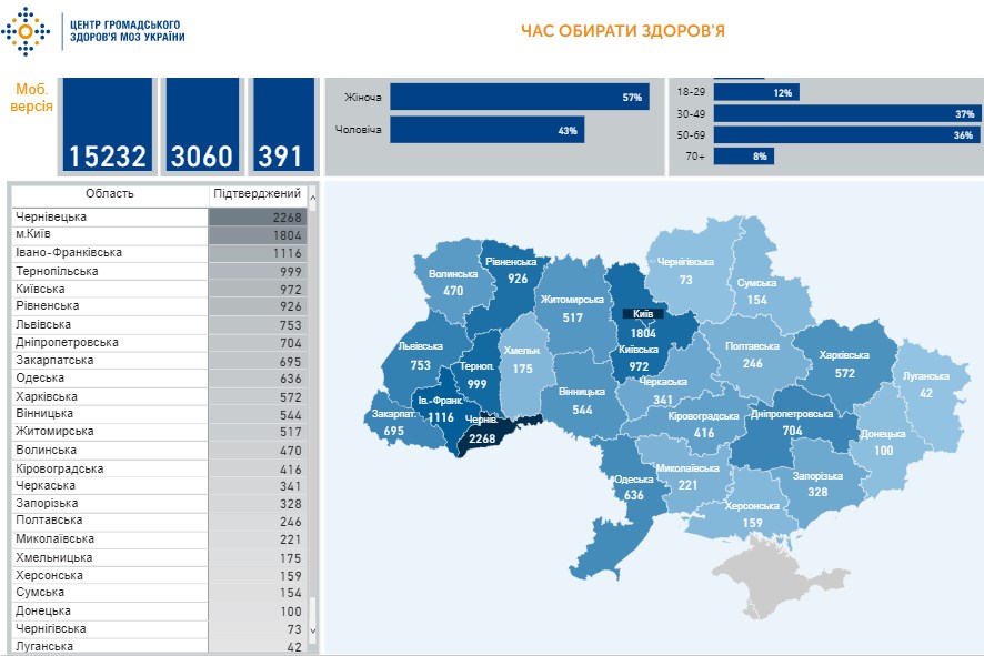 - коронавірусом захворіло 15232 українців