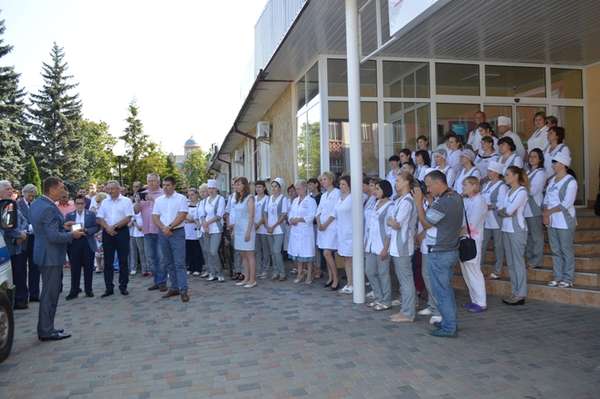 Зустрічали делегацію міський голова Олег Кіндер, головний лікар МТМО Олег Самчук та численний колектив закладу.