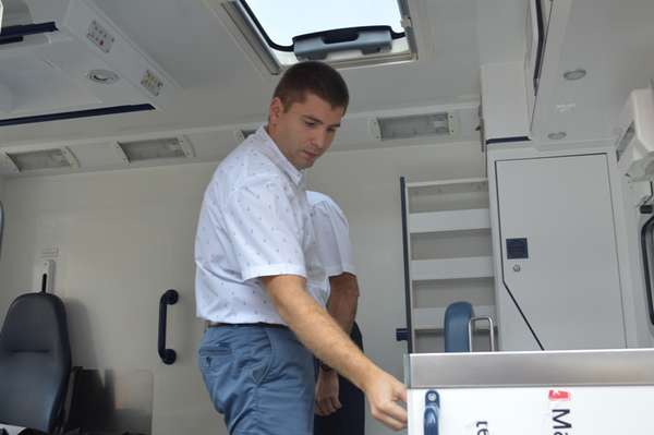 Потому всі оглянули автомобіль. «У комплектації таких автівок є сучасні апарати штучної вентиляції легень, пульсоксиметри для вимірювання насичення крові киснем, багатоканальні електрокардіографи та дефібрилятори, сучасні медичні ноші. Одним словом, усе необхідне для транспортування важкохворих на далекі відстані»,- наголосив головний лікар Олег Самчук.