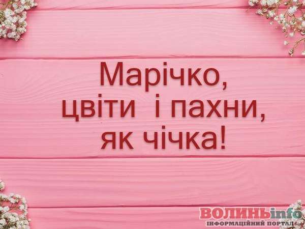 Цей день немов створений для подарунків і квітів – вітати тебе, Маріє, уже готовий цілий світ. Бажаю, щоб здійснилися всі твої мрії, щоб ти завжди крокувала життєвою стежиною з успіхом і удачею. Нехай любов дарує ласку, віру, ніжність і тепло. Щоб жила ти, немов у казці, щоб у світ несла добро!