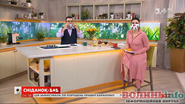 Черкащанка Оксана Черевишня вирішила убезпечити ведучих Сніданку з 1+1 у час карантину і передала набір оригінальних масок, який виготовила з донькою спеціально для Нелі Шовкопляс, Єгора Гордєєва, Людмили Барбір та Руслана Сенічкіна. Це сьогодні дефіцит і дуже важлива річ.