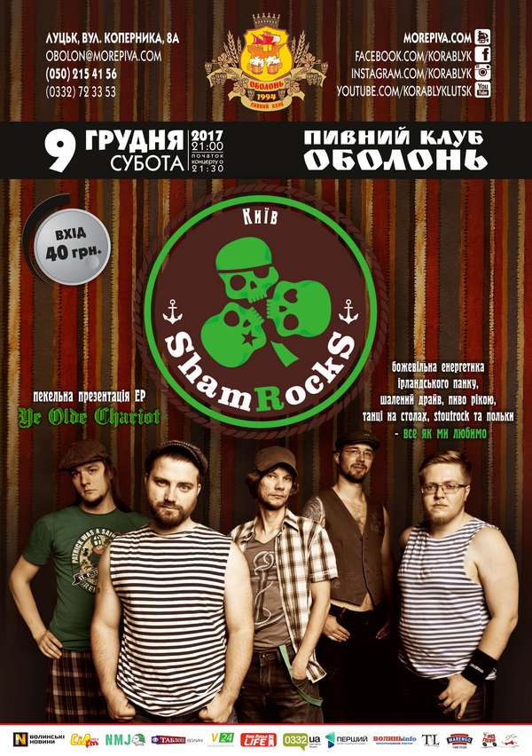 У суботу «Кораблик» пропонує завітати послухати банду ірландських «ShamRocks» з Києва. Хлопці презентуватимуть новий альбом. Початок – о 20:00. Телефони для довідок – (0332) 723 353, 050 215 41 56.