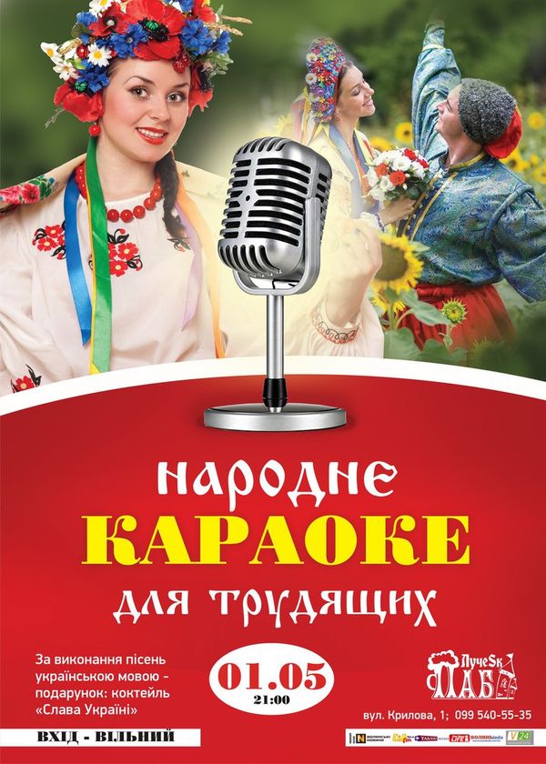 Сьогодні, у понеділок, «ЛучеSk-паб» запрошує до себе на «Караоке для трудящих». За виконання пісні українською мовою дарують коктейль «Слава Україні». Вхід – вільний! Початок – о 21:00. Телефон для довідок – 099 540 55 35.