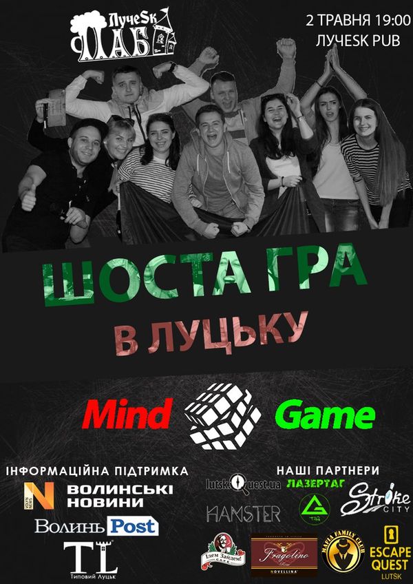 У вівторок «ЛучеSk-паб» кличе до себе на шосту гру у Луцьку «Mind Game». Початок – о 19:00. Телефон для довідок – 099 540 55 35.