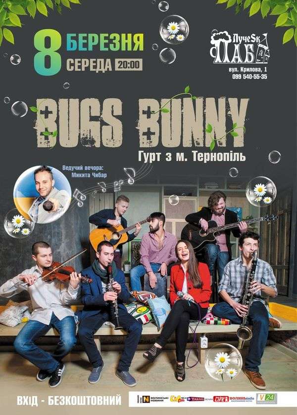 Запрошує до себе в середу і «ЛучеSk-паб». Там відбудеться концерт тернопільського гурту «Bugs Bunny». Ведучий вечора – Микита Чибар. Вхід – вільний! Початок – о 20:00. Телефон для довідок – 099 540 55 35.