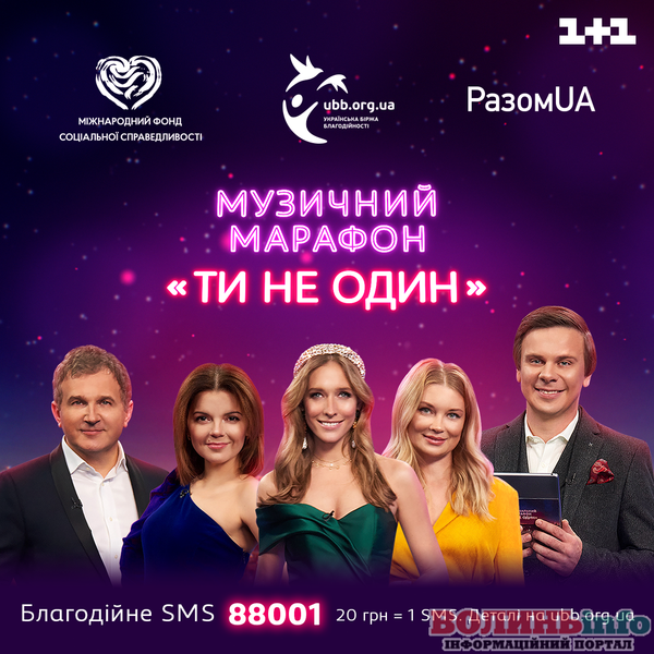 Лікарі щодня рятуються наші життя, а сьогодні це відбувається ціною їхнього власного життя і здоров’я. Кількість хворих на коронавірус серед медичних працівників постійно зростає. Щоб допомогти їм у боротьбі з вірусом та зібрати кошти на закупівлю необхідних засобів, телеканал «1+1» розпочав благодійний музичний марафон «Ти не один».