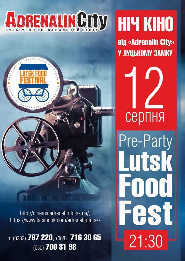 Культурно-розважальний центр “Адреанлін сіті” запрошує всіх шанувальників на ніч кіно у Луцькому замку. Нічний кіноперегляд відбудеться 12 серпня у форматі pre-party напередодні гастрономічного фестивалю “Lutsk Food Fest”.