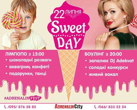 22 липня культурно-розважальний центр «Адреналін Сіті» запрошує дітей та дорослих на солодкий фест – «Sweet Day».