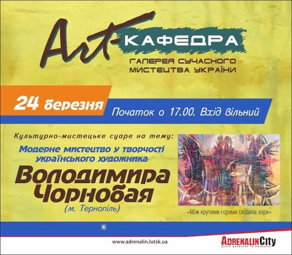 Під час заходу гості галереї матимуть нагоду познайомитись з життєвим та творчим шляхом художника-модерніста Тернопільщини Володимира Чорнобая, а також ознайомитись з кращими зразками його робіт