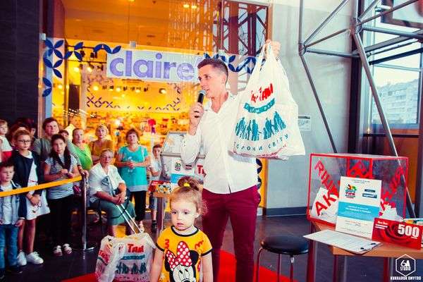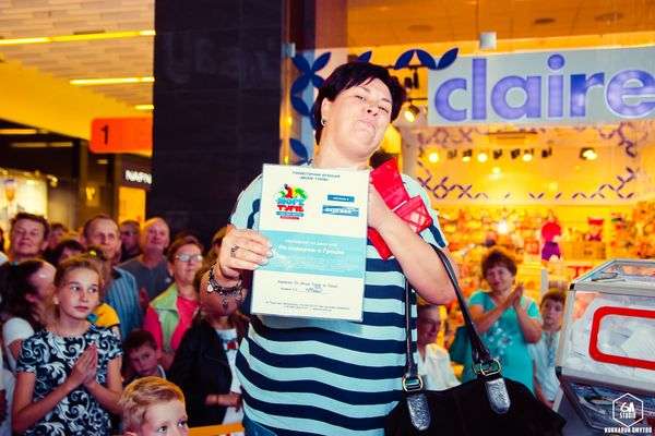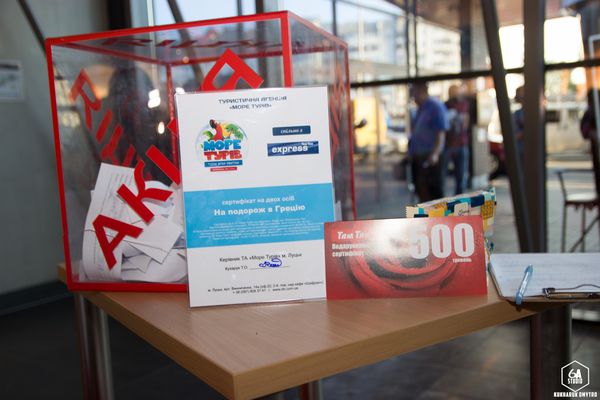 Для розіграшу ведучий запросив в допомогу маленьких помічників. Тому анкетки тягнули саме вони. Спочатку розіграли набор з водою та цукерками. Також переможці акції отримали сертифікати по 500 гривень на покупки в гіпермаркеті «Там Там».