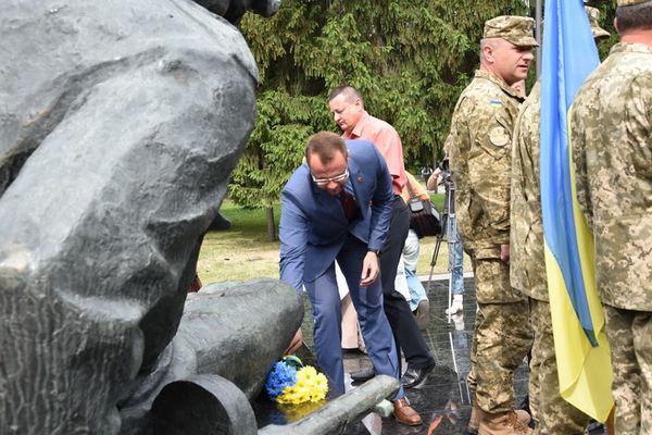 Присутні вшанували хвилиною мовчання усіх, хто ціною власного життя виконав святий обов’язок – захищав нашу державу. Опісля в знак вічної пам’яті за загиблими представники влади та громадськість міста поклали квіти до пам’ятного знаку “Поранений солдат”.