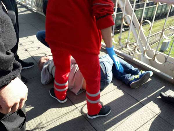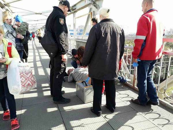 Непритомного чоловіка на пішохідному мосту, що з’єднує залізничний вокзал та торговий центр «Караван» виявив інспектор департаменту муніципальної варти Луцька Назар Богонос.