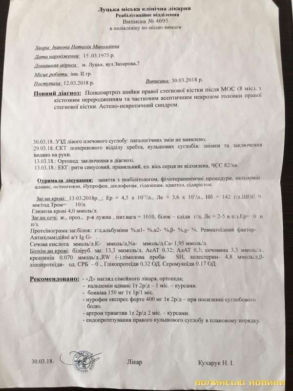 Мешканка Луцька Наталія Іванова, яка має другу групу інвалідності, потребує операції із протезування правої ноги, – повідомляє Інформаційне агенство Волинські новини.