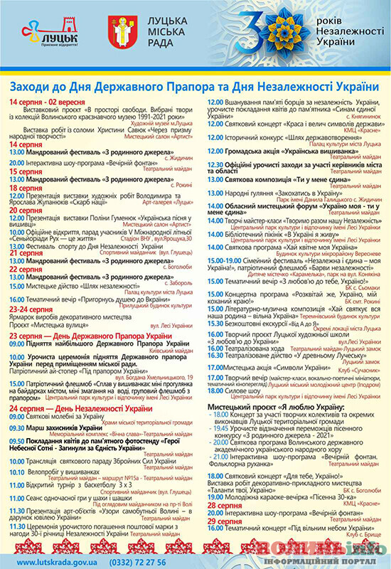 Луцьк готується до Дня незалежності – що цікавого відбуватиметься у міській територіальній громаді?