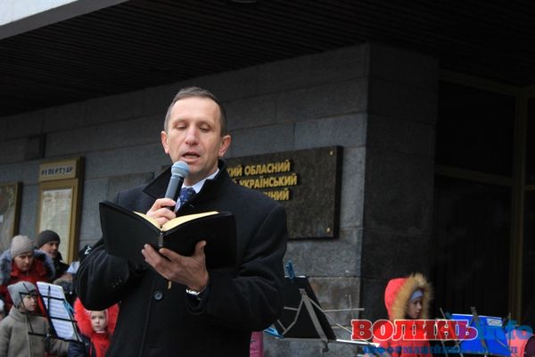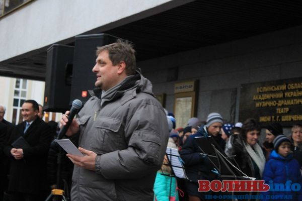Привітати усіх християн, хто святкує Різдво за західним обрядом, прийшов заступник міського голови Сергій Григоренко. Він нагадав, як виглядав Театральний майдан три роки тому, коли у країні відбувалися трагічні події. Також Григоренко попросив священослужителів молитися за владу, щоб їй вдавалося правильно чинити.