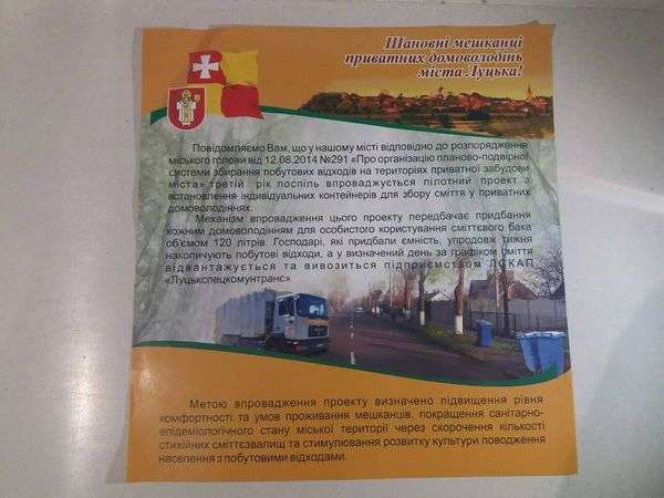 Інспектори відділу муніципальної поліції проводили профілактичну та роз’яснювальну роботу у приватних секторах в Луцьку, щодо встановлення контейнерів для збору сміття та укладення договорів на його вивіз. Сьогодні були на вул. Чернишекського, Ковельській, Героїв УПА.