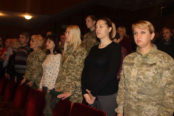 Хвилиною мовчання присутні у залі вшанували світлу пам’ять полеглих побратимів-прикордонників та усіх, хто віддав життя у боях за мирне небо над Україною.