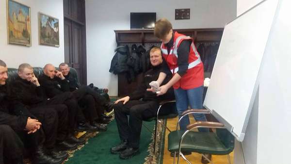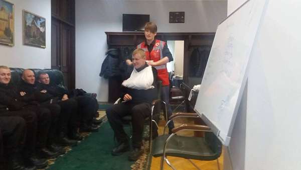 “Тренер Волинської обласної організації Товариства Червоного Хреста України Наталія Домбровська розповідала та показувала на сучасному манекені як потрібно діяти при опіках, різного роду травмах, кровотечі, отруєнні, а також транспортуванні хворих. Такі ж навчання проведуть і для решти інспекторів-муніципалів, щоб вони вміли чітко діяти при наданні громадянам першої медичної допомоги.