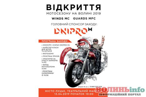 13 квітня 2019 року у центрі міста Луцька відбудеться традиційне відкриття Мотосезону Волині 2019. В рамках заходу на Театральному майдані міста передбачене безкоштовне святкове дійство, яке розпочнеться о 10.00.