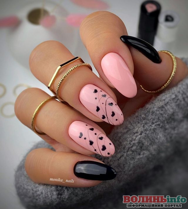 Модні нігті до Дня Святого Валентина – це вже не просто класичні червоні прикраси і прикраси у формі серця. У трендах також переважає ніжний бежевий, рожевий від світлого до інтенсивного і навіть чорний! Також модні художні візерунки та дрібні прикраси.