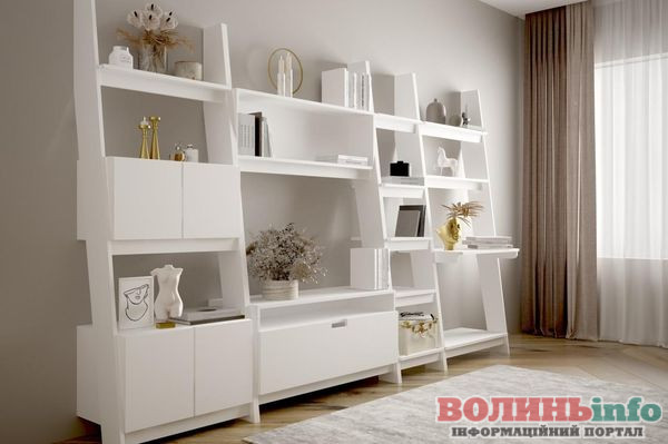 - у стінці вже передбачені всі необхідні предмети, які можуть знадобитися у вітальні, як-от тумба під телевізор, шафа, вітрина, пенал, комод чи навісні полиці;