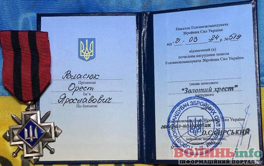 Мужність і героїзм: Орест Власюк з Рожища нагороджений “Золотим хрестом”