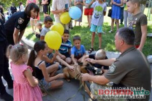 Мильні бульбашки та знайомство зі службовими собаками, як поліція у Луцьку розважала дітей-переселенців