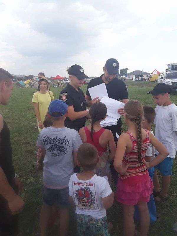 Діти беруть участь у вікторині, творять тематичні малюнки, фотографуються у патрульному автомобілі та просто неформально спілкуються з інспекторами.