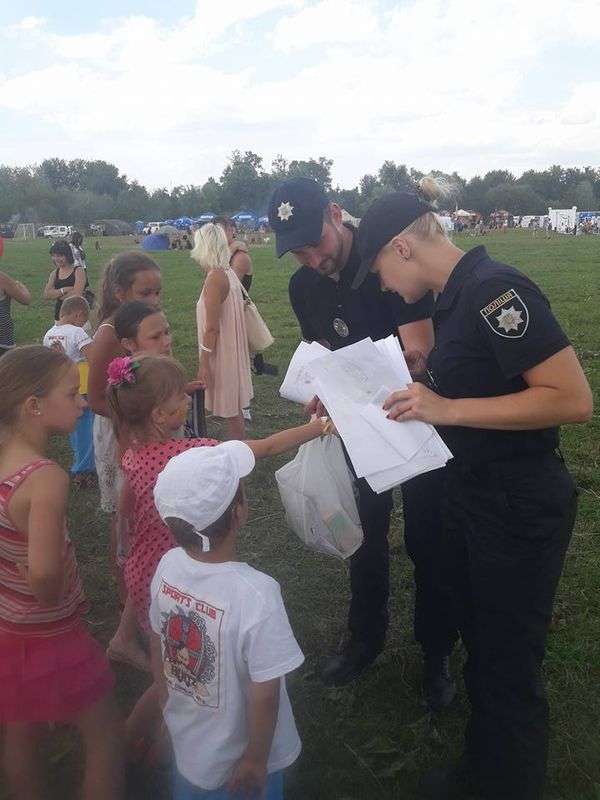 Під час фестивалю Бандерштат луцькі патрульні не лише охороняють публічну безпеку, а й розповідають найменшим учасникам у дитячому містечку про правила дорожнього руху.