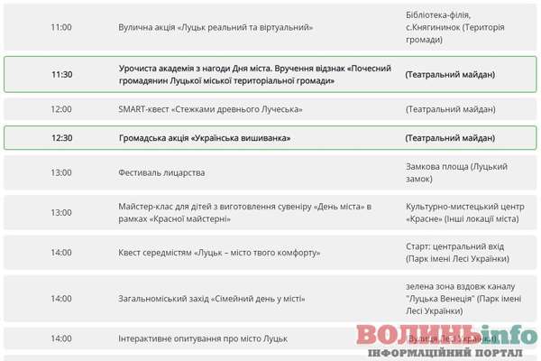 На День міста у Луцьку обіцяють цікаву та різноманітну програму святкування