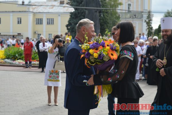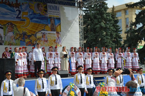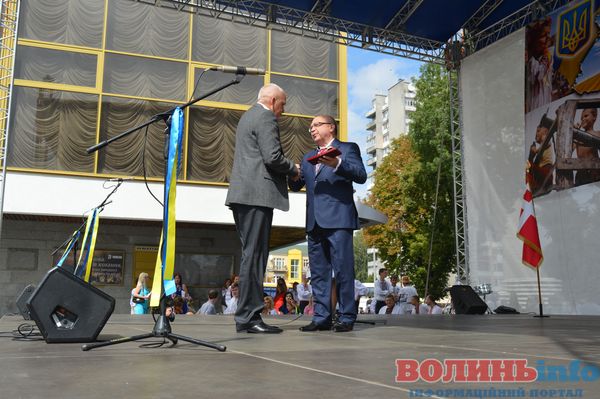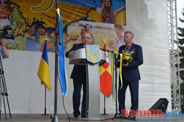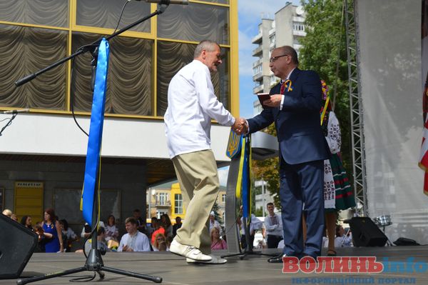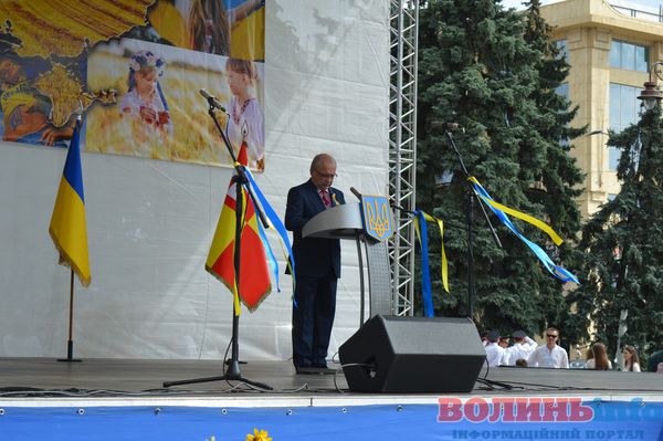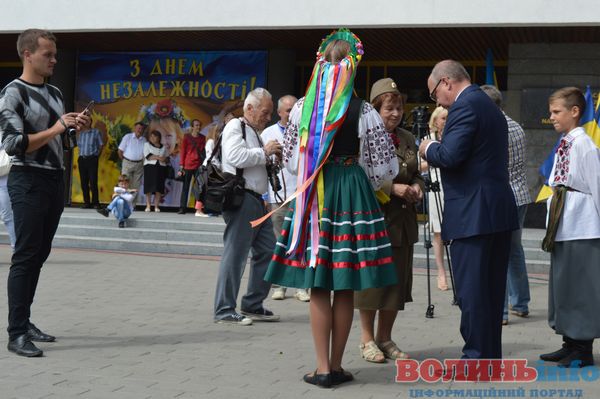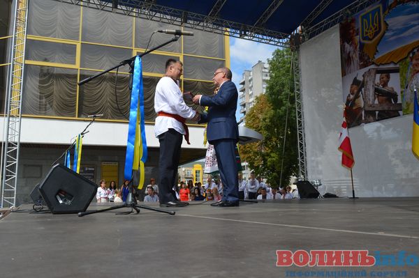 Також зі святом лучан та гостей міста привітав перший заступник голови Волинської облради Пирожик Олександр. Він назвав День Незалежності великим святом з великою тривогою на серці, оскільки час від часу кожен думає про те, як зараз тим, хто на Сході. Він також вручив нагороди землякам.
