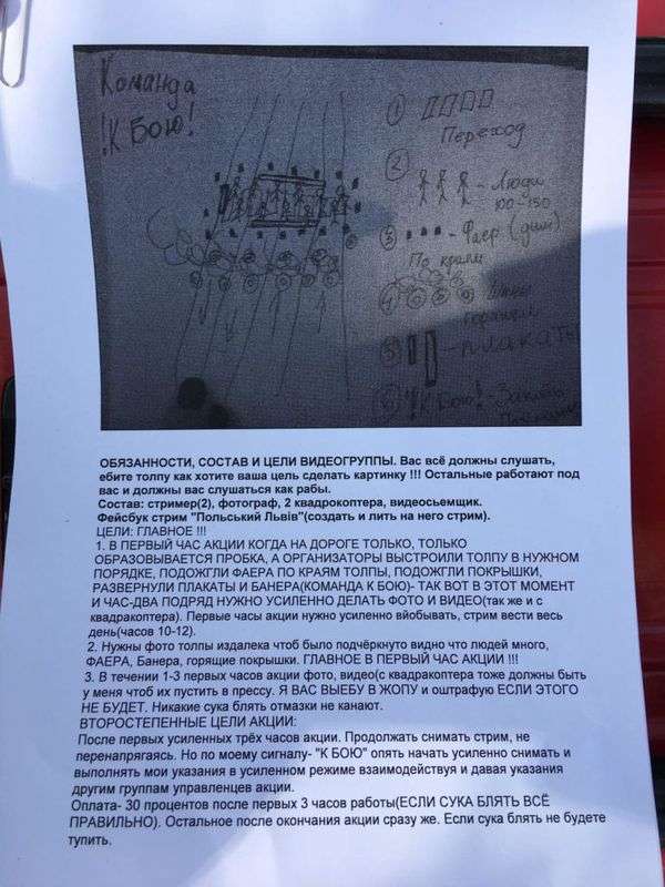 Правоохоронці вилучили в організаторів провокації письмові та електронні інструкції щодо порядку її організації і проведення, а учасників ‒ фаєри, димові шашки.