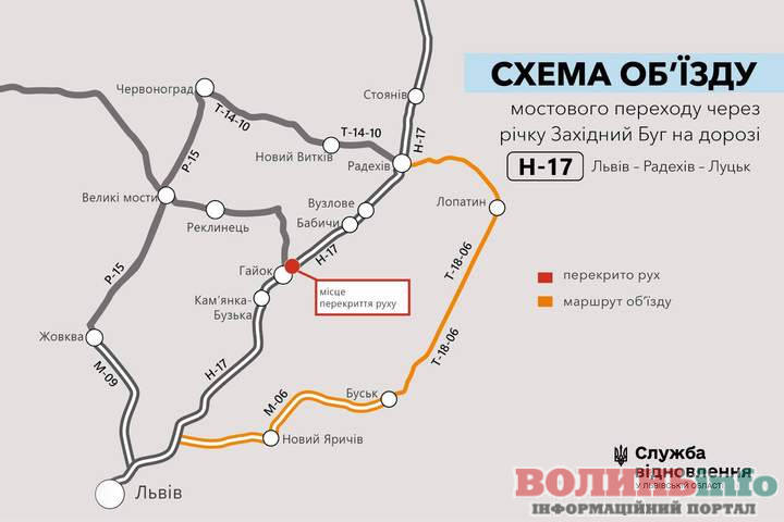 На дорозі Львів – Радехів – Луцьк, поблизу села Гайок, тимчасово буде обмежено рух транспорту через міст. Згідно з повідомленням Служби автомобільних доріг, перекриття автомобільного руху на мосту через річку Західний Буг на дорозі Н-17 Львів – Радехів – Луцьк триватиме приблизно з 17 по 20 липня.