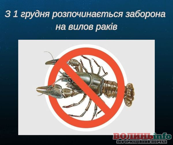 Із 1 грудня 2025 року на території Волинської області починає діяти сезонна заборона на вилов річкових раків. Обмеження спрямоване на збереження популяції цих водних біоресурсів у період линьки та виношування ікри.
