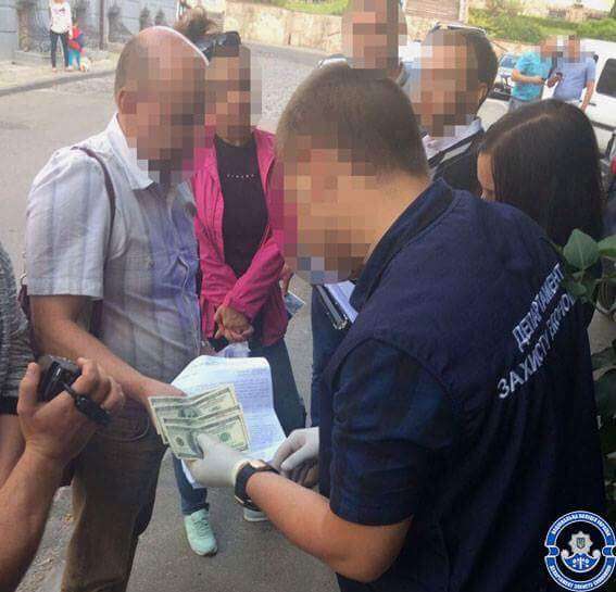 Затримали посадовця під час одержання 500 доларів США неправомірної вигоди біля міської ради.
