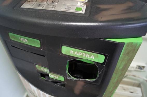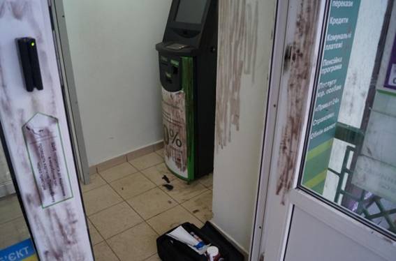Підірвати банкомат зловмисникам не вдалося, тому вони взялися ламати його фомками, проте були викриті нарядом поліції охорони.