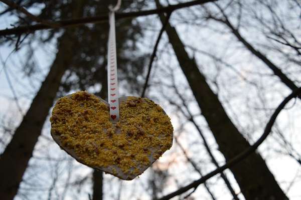Саме за результатом такої плідної роботи дітей та дорослих пернаті Воротнівського лісництва отримали оригінальні годівнички у вигляді смачних та гарненьких сердечок.