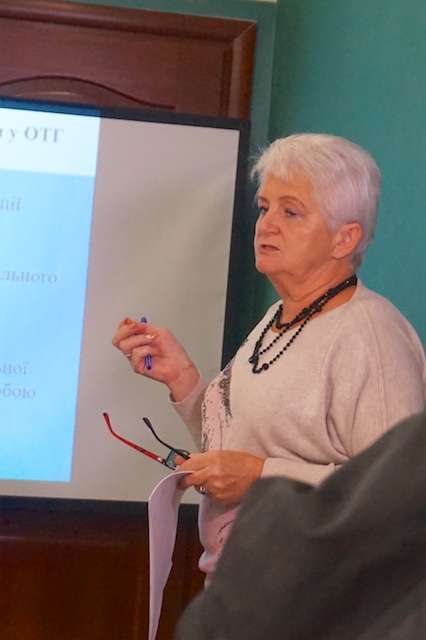Завідувач відділом аналітичної обробки інформації акредитації та ліцензування обласного інформаційного аналітичного центру медичної статистики Марія Гогоша розповіла про функціонування закладів охорони здоров’я в об’єднаних територіальних громадах. Вона розповіла про майбутні так звані опорні амбулаторії, документи, які необхідні дя передачі медичної практики, які лікарі можуть працювати в ОТГ тощо. Також у своєму виступі спеціаліст повідомила про те, як нараховувати страж лікарям, як організовувати імунопрофілактику, лікування дітей у громадах тощо.