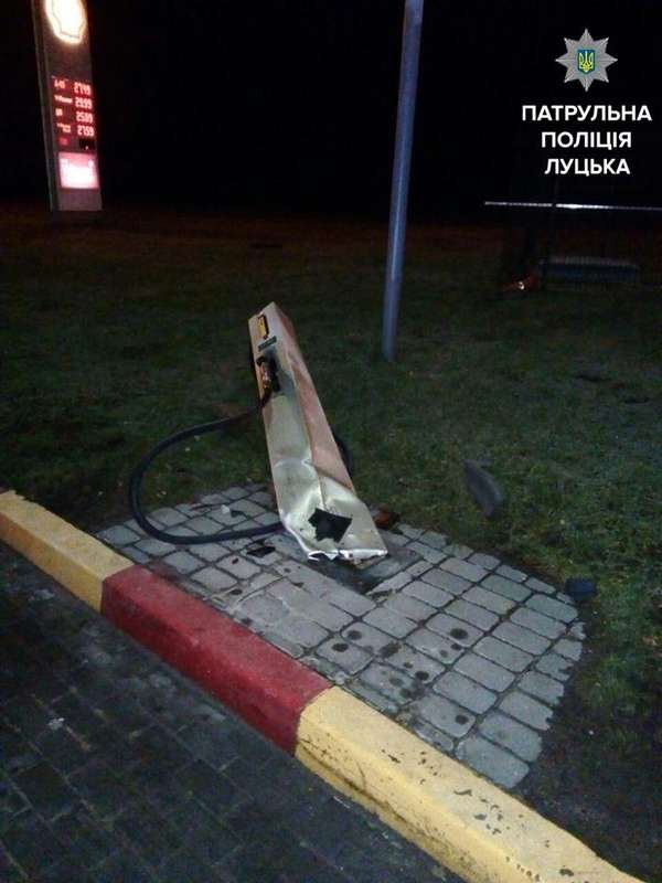 Заявник повідомив, що водій вантажівки рухався заднім ходом, переїхав колонку на АЗС, а потім спокійно заїхав на парковку і зупинився.