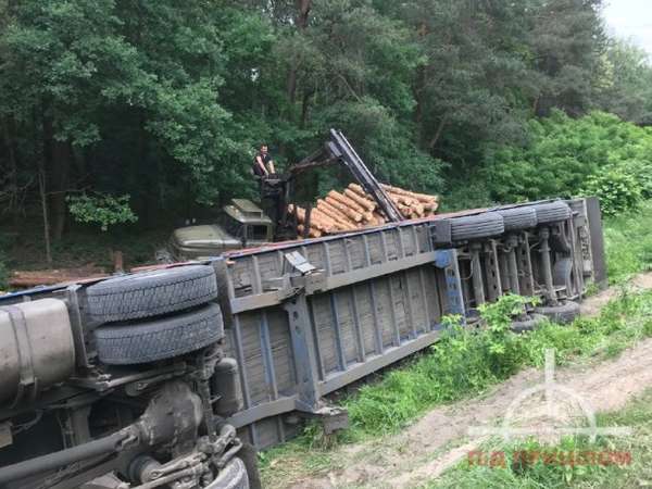 На Волині перекинулася вантажівка з деревиною