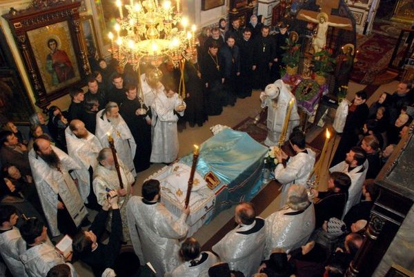 Літургію Напередосвячених Дарів і чин Похорону очолив вікарій Київської Митрополії і намісник Свято-Успенської Києво-Печерської Лаври митрополит Павел. Йому, під час відспівування співслужили, зокрема, вікарій Київської Митрополії і намісник Свято-Успенської Почаївської Лаври митрополит Почаївський Володимир, митрополит Вінницький і Барський Симеон, митрополит Сарненський і Поліський Анатолій, архієпископ Житомирський і Новоград-Волинський Никодим, архієпископ Володимир-Волинський і Ковельский Володимир, керуючий Волинською єпархією єпископ Волинський і Луцький Нафанаїл, та інші архієреї. Загалом чин Похорону очолили 12 єпископів, яким співслужив сонм священнослужителів.