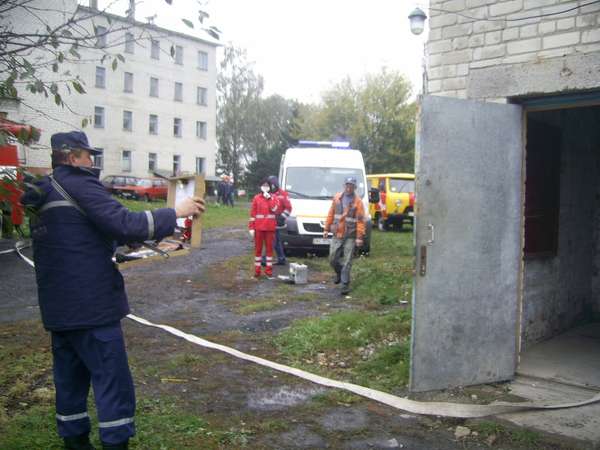 По прибуттю на місце умовної пожежі рятувальники провели евакуацію потерпілого та загасили пожежу. Окрім рятувальників, до проведення навчань залучалися працівники поліції, газової служби, медичної допомоги, енергетики, які проводили знеструмлення котельні, перекривали газ та ліквідували місце його витоку, надавали медичну допомогу потерпілому, забезпечили охорону громадського порядку силами працівників поліції.